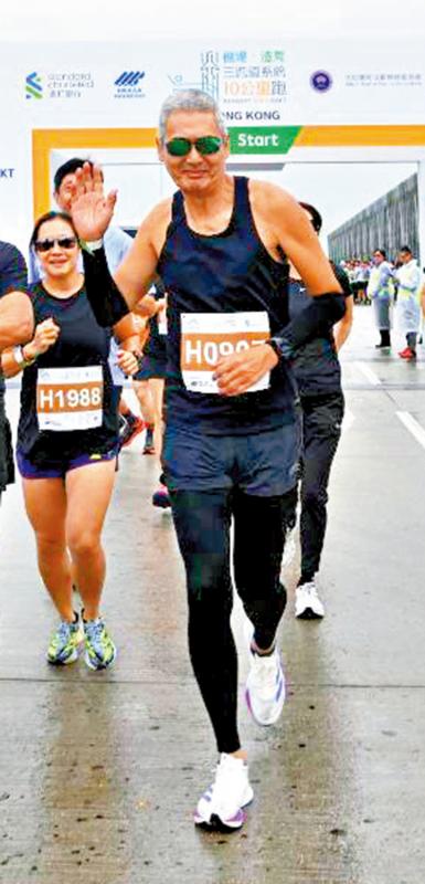 香港演员周润发17日参加马拉松比赛。香港《大公报》