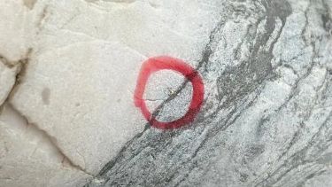 湖南平江县万古金矿田地下岩芯上可见明金。大陆央视