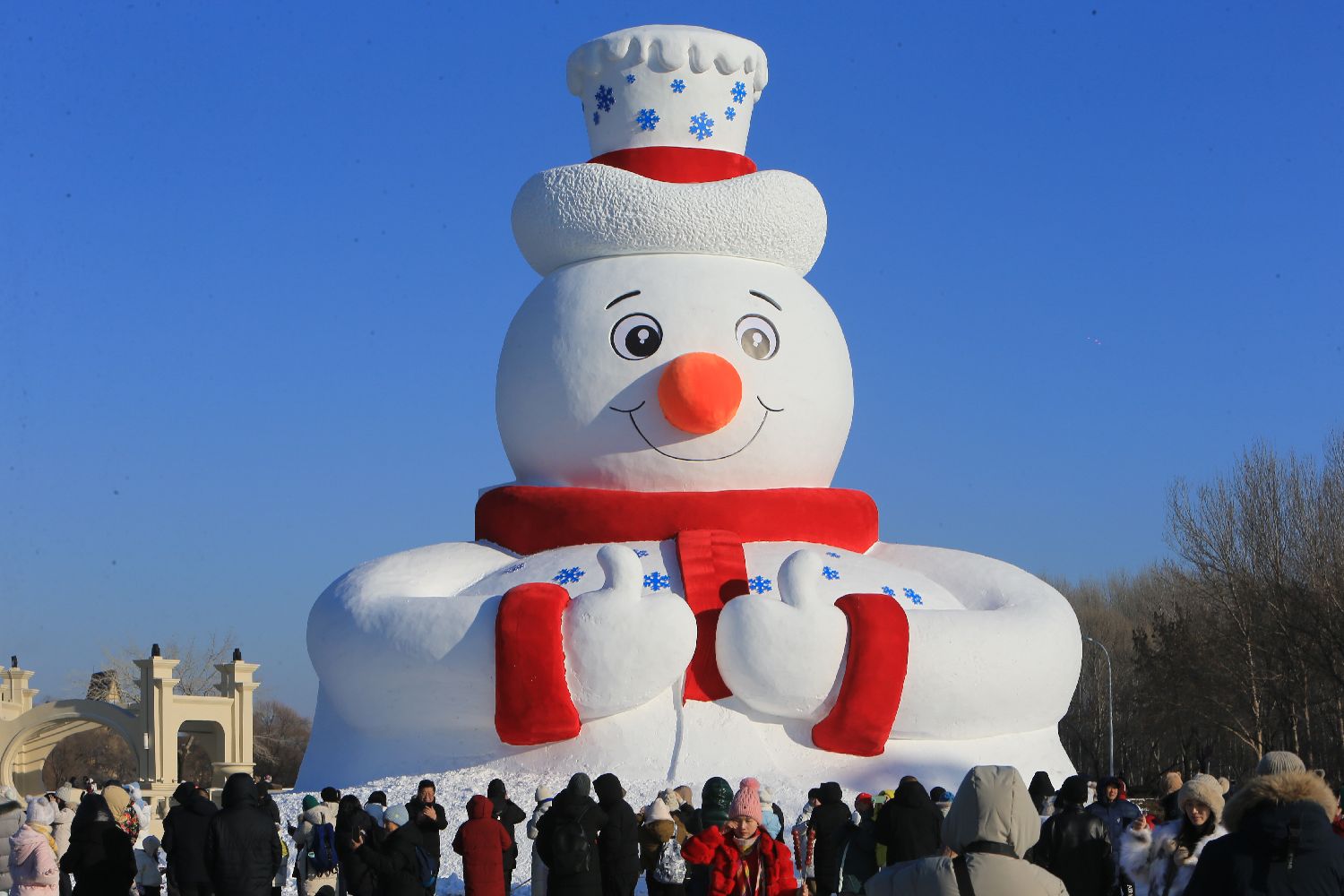 中新网报道,8日,哈尔滨市今年冰雪季首个建成的大型雪雕——第37届太阳岛雪博会“雪人先生”亮相迎客。这座巨型雪雕高达20米、用雪量达4000立方米。此外,哈尔滨冰雪大世界票价也已于7日敲定,标准成人票价328(人民币,下同)元/张,优惠票价240元/张。值得注意的是,哈尔滨冰雪大世界官方还称,凡是名字中含有“冰冰”或“雪雪”的游客,均可凭个人有效身份证免费入园游玩一次。