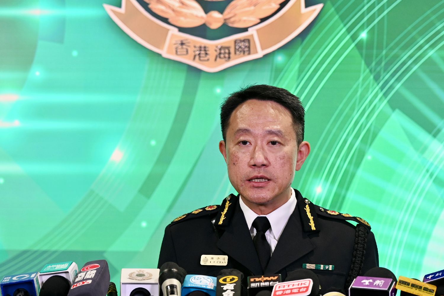 2024年12月31日下午,陈子达在香港海关总部大楼会见传媒。中新社