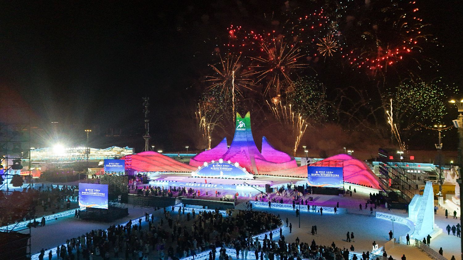 “冰雪同梦,亚洲同心”……开幕式现场,无人机在夜空中亮出精美字样。33天后,这座世界上最大的冰雪主题乐园,将迎接第九届亚冬会启幕。