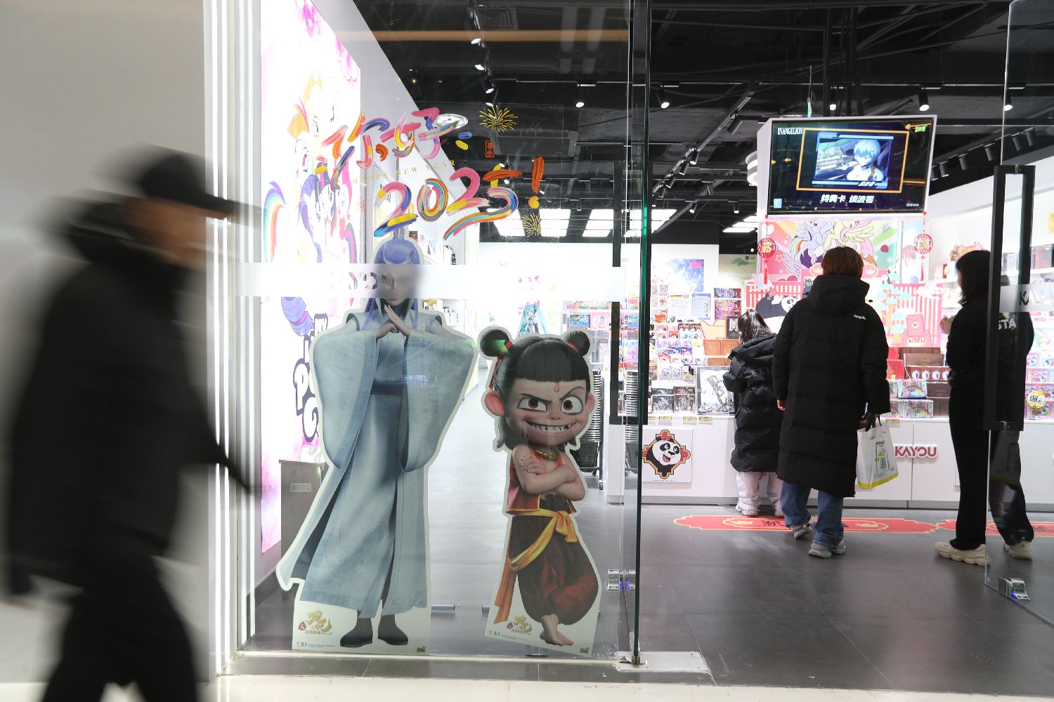 6日,民众经过北京一商场内《哪吒之魔童闹海》电影角色立牌。中新社