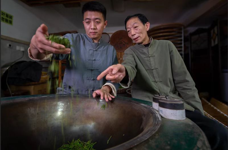 春茶尚未开采,但在浙江杭州西湖区,浙江省非物质文化遗产“西湖龙井采摘和制作技艺”代表性传承人樊生华的茶厂中已有不少实习生到岗,为即将到来的茶忙时节做准备。在樊生华眼中,这段时间也是让年轻人更快接棒炒制龙井的“黄金时期”。