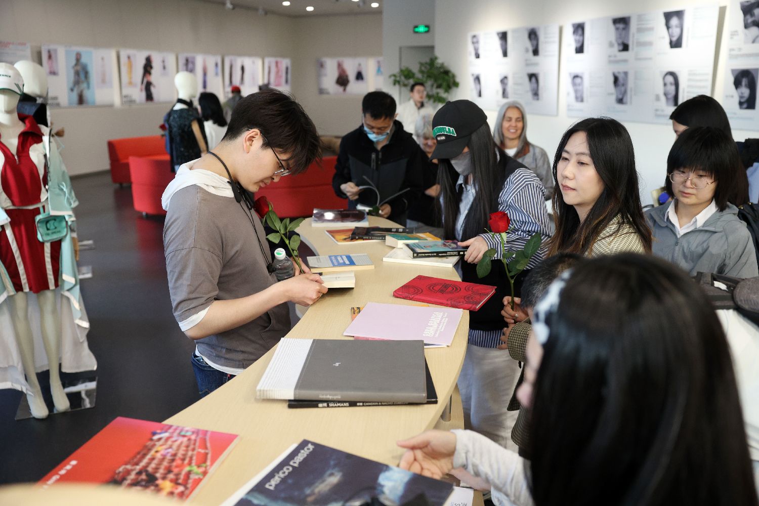 当天,现场的每位观众都得到了一支玫瑰花和一本图书,以书为友。(林飞/文)