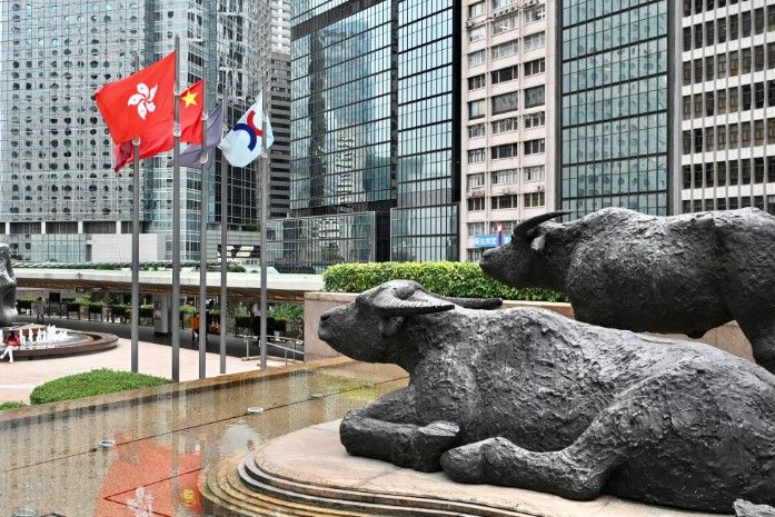 图为香港交易广场上的铜牛。中新社资料图