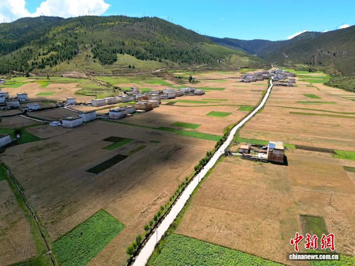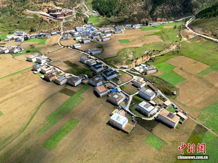 9月14日,初秋时节,四川省甘孜州乡城县正斗村千亩青稞成熟,即将迎来收割。村内一栋栋白藏房与成片青稞相映生辉,构成一幅川西田园画卷。
