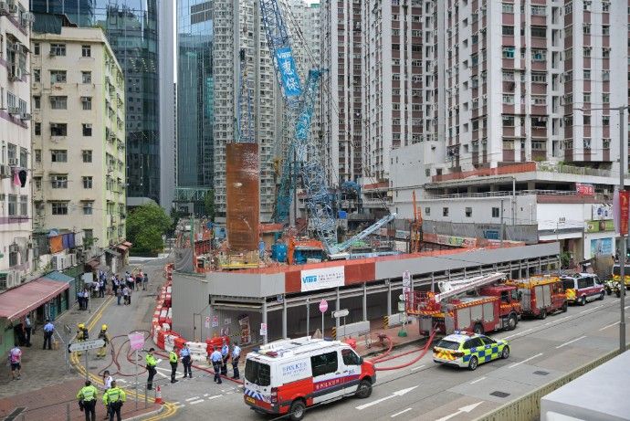中新社报道,在当地时间当天下午的工地附近,多辆警车和消防车在场戒备,现场拉起警戒线,周边道路被封锁。