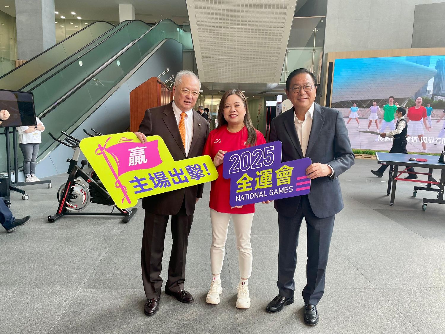 香港特区政府文化体育及旅游局局长罗淑佩(中)到立法会出席全运会打气活动。香港“大公文汇全媒体”