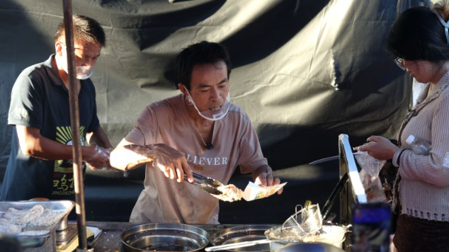 中新网6日报道,十一假期里,每天12时左右,李俊永的炸鸡排摊前便早早排起百米长队。他一边快速裹粉、翻炸,一边用他特有的金句与顾客唠嗑。有外地游客连夜赶到这里,希望能与“鸡排哥”互动,甚至有外籍游客专程排队4小时只为尝鲜。