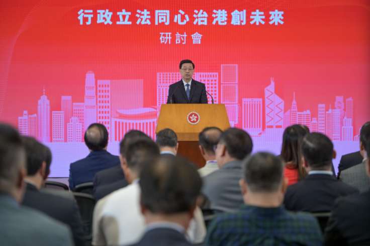 10月16日,香港特区政府举办“行政立法同心治港创未来”研讨会。图为香港特区行政长官李家超作主旨发言。中新社