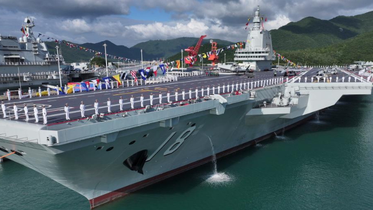 航空母舰福建舰入列授旗仪式5日在海南三亚某军港举行。这是中国第一艘电磁弹射型航空母舰,也是中国第三艘航母,对中国海军转型建设具有里程碑意义。军事专家张军社受访时表示,福建舰入列即具备战斗力,表明中国综合国力进一步增强、科技水平不断提高。
