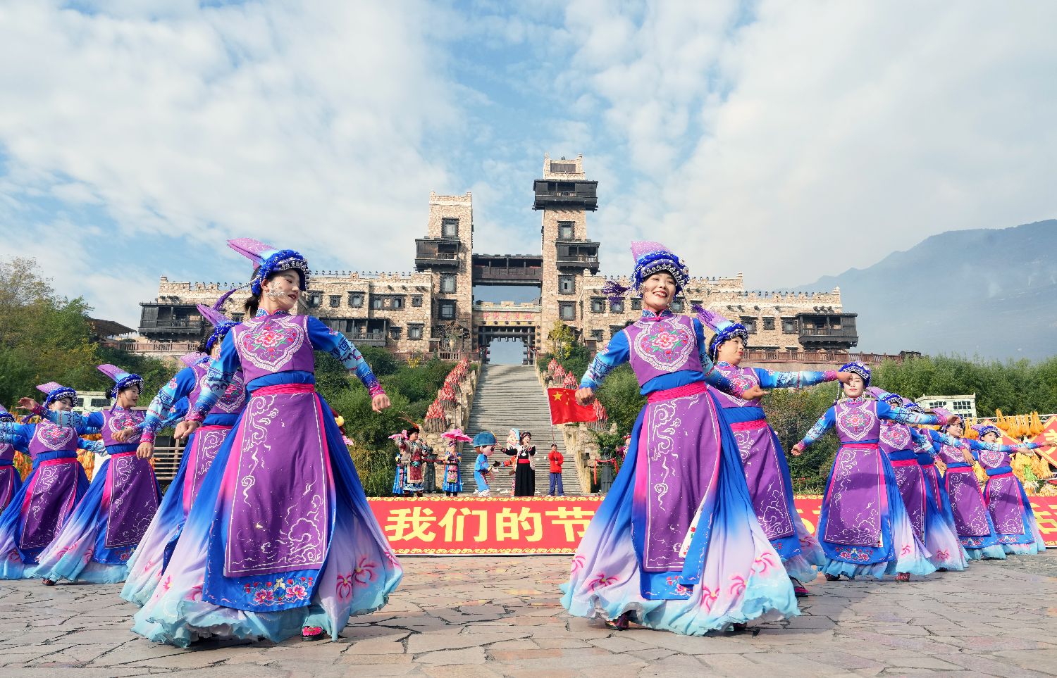 羌年又称“日麦节”,意为“吉祥欢乐的日子”,核心为庆丰收、祈平安,是羌族集祭祀、歌舞、技艺展示、知识传授于一体的民俗活动。地处四川阿坝州东南部的茂县,是中国最大羌族聚居区,山间碉楼耸立、谷中羌笛悠扬,各羌寨陆续开启各具特色的羌年庆典。
