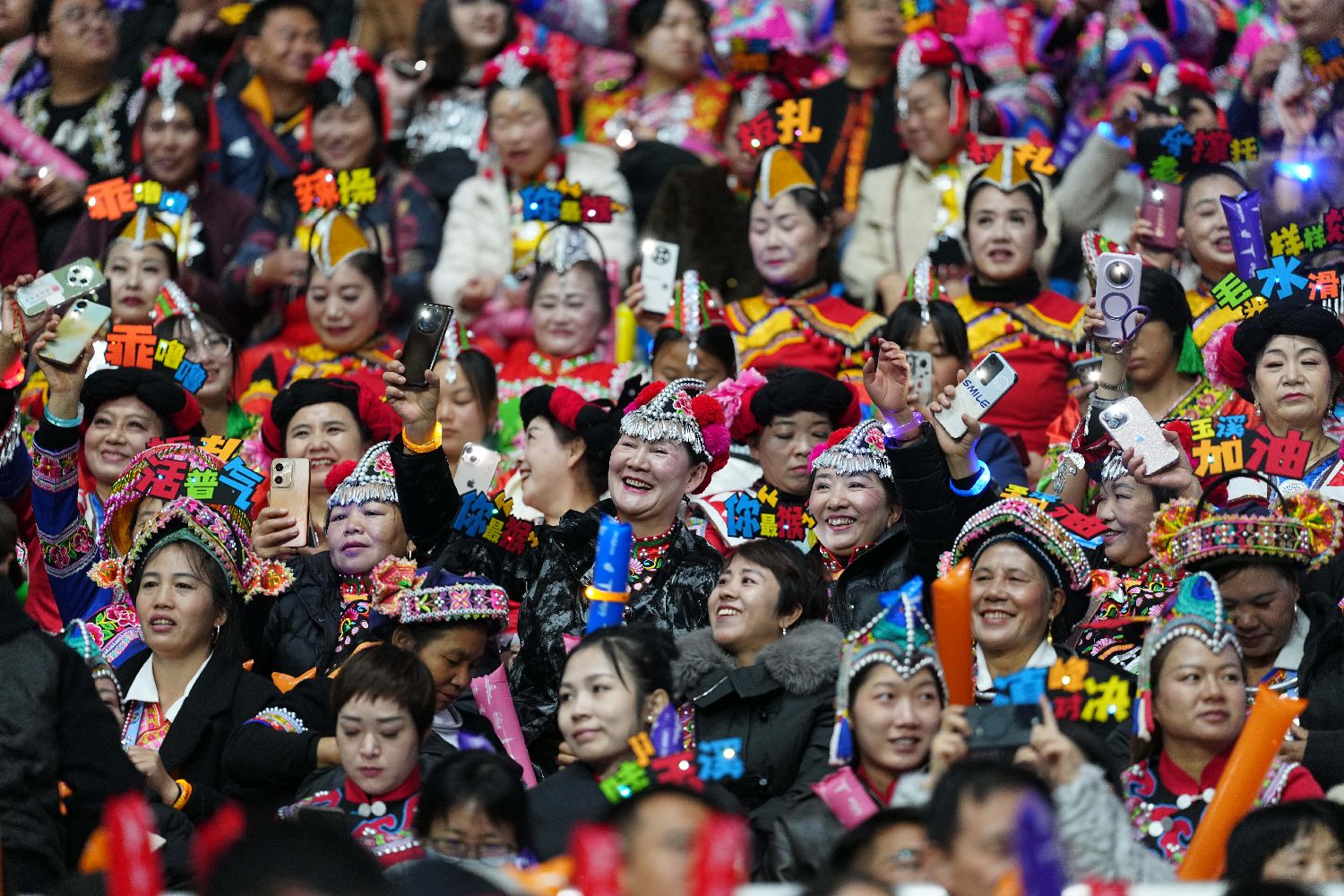11月29日,“滇超”在玉溪举行揭幕战,云南民众身着民族服饰观战。中新社