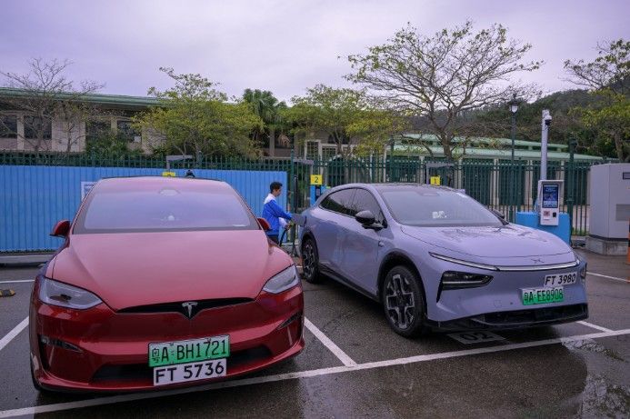 12月23日,香港特区政府运输署与中电源动集团合作在大屿山竹篙湾设立的充电设施正式启用,为“粤车南下”及“港车北上”旅客提供配套支持。中新社