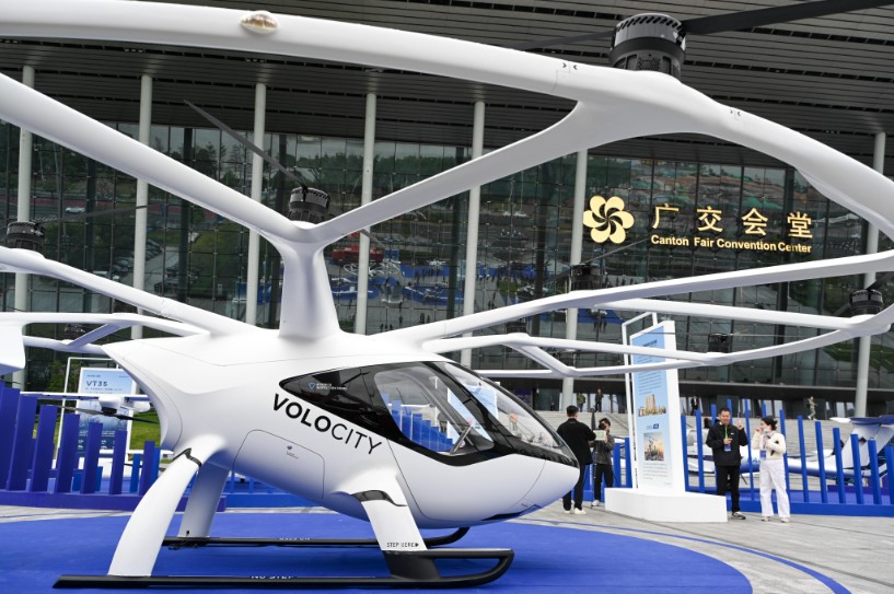 12月25日,首届粤港澳大湾区低空经济高质量发展大会在广州举办。图为大会上展示的电动空中出租车。中新社