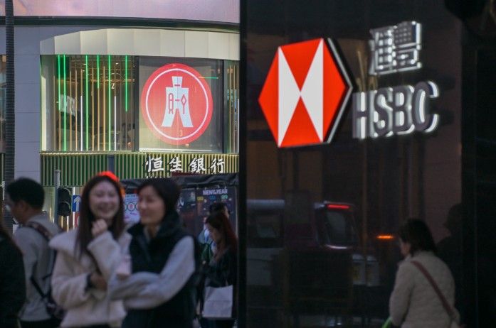 图为香港街头汇丰银行和恒生银行的招牌。中新社