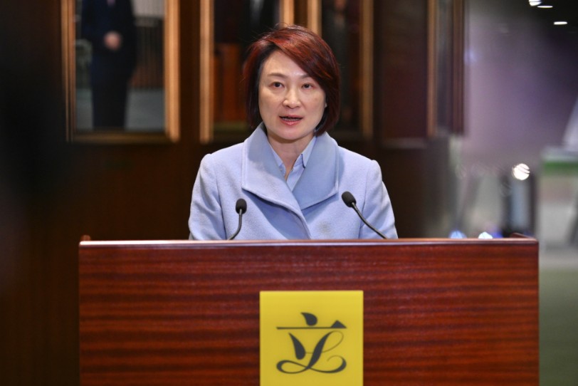 1月8日,香港特区第八届立法会主席李慧琼在立法会综合大楼会见传媒。中新社