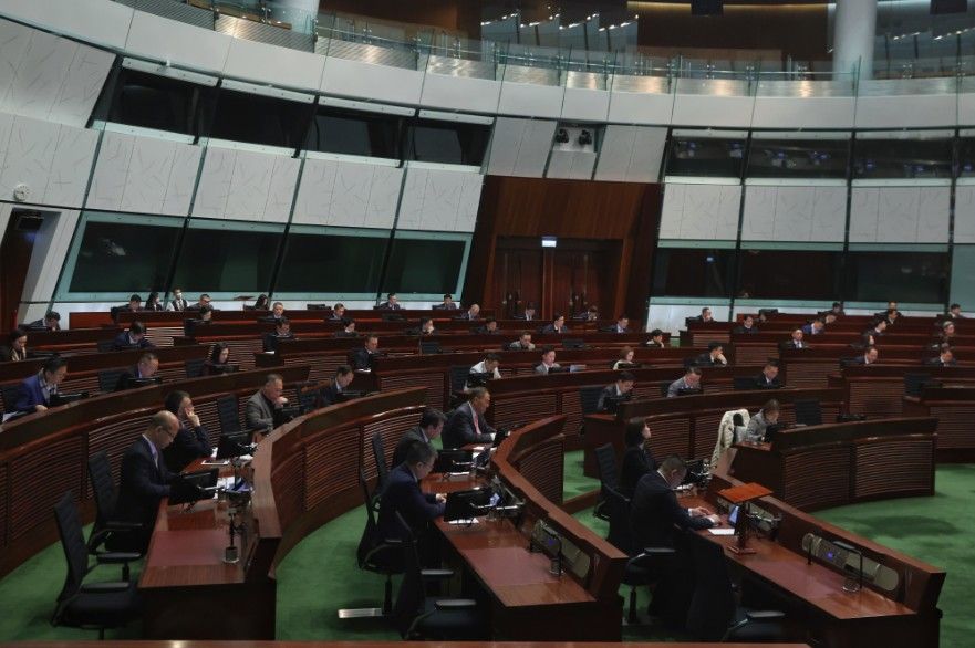 1月21日,香港立法会举行大会,辩论有关“制订香港特区发展愿景,主动对接国家'十五五'规划”的议员议案。图为会议现场。香港中通社