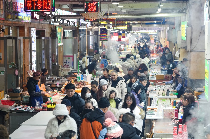 2025年12月18日,民众游逛吉林延吉东方水上市场。中新社
