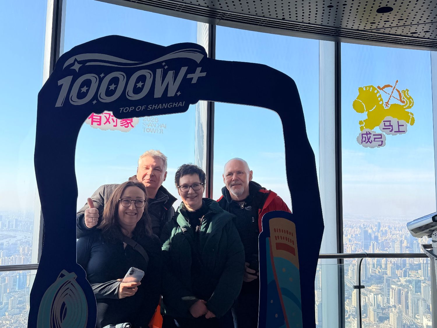 马切伊表示,他们慕名而来俯瞰城市风景,没想到成为幸运游客。“我们的家乡有欧洲有名的高楼华沙塔,我们了解到上海中心大厦的高度约是它的两倍。”