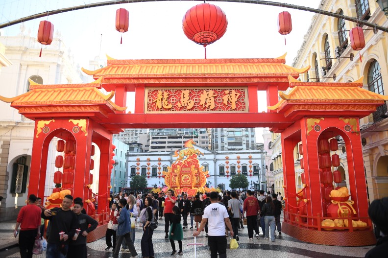 2月13日,澳门多地加装骏马主题装饰,市面氛围热闹喜庆,以骏马奔腾之姿迎接新春。中新社