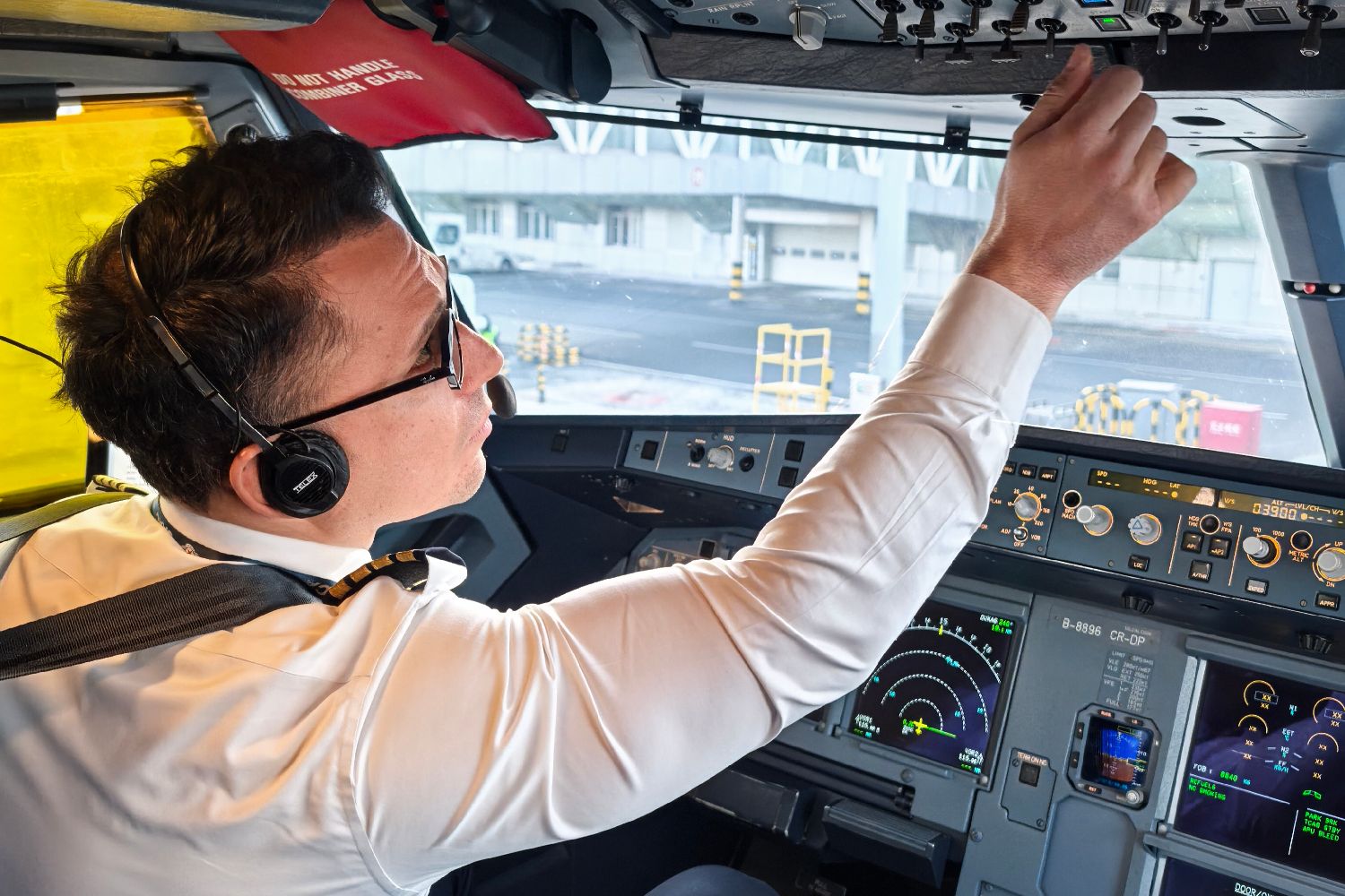 长龙航空的墨西哥籍机长卡洛斯作飞行前的准备。中新社这是卡洛斯在中国度过的第八个春节,驾驶舱门贴着“福”字,要吃饺子、年糕等美食,机组见面互道“新年快乐”……他已对春节习俗“熟门熟路”。