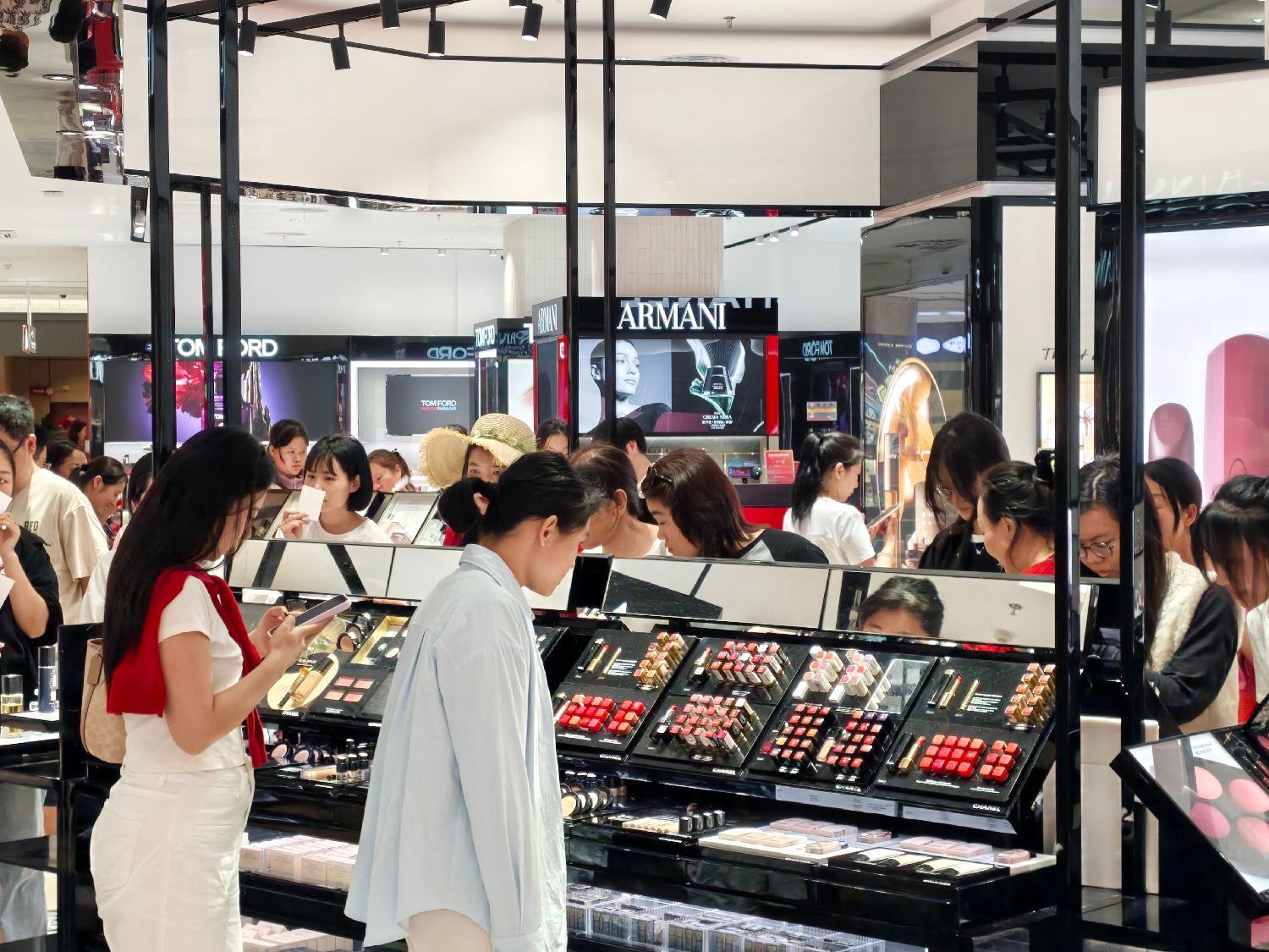 23日,消费者在cdf海口日月广场免税店购买免税品。中新社