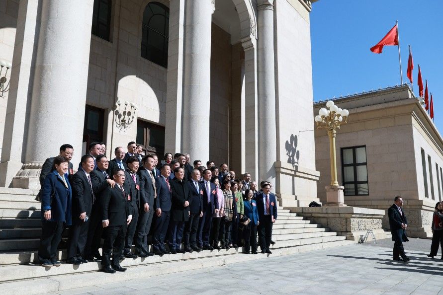3月6日,全国政协十四届四次会议港澳地区全国政协委员联组会在政协礼堂举行。图为联组会后,部分港澳地区全国政协委员合影。中新社