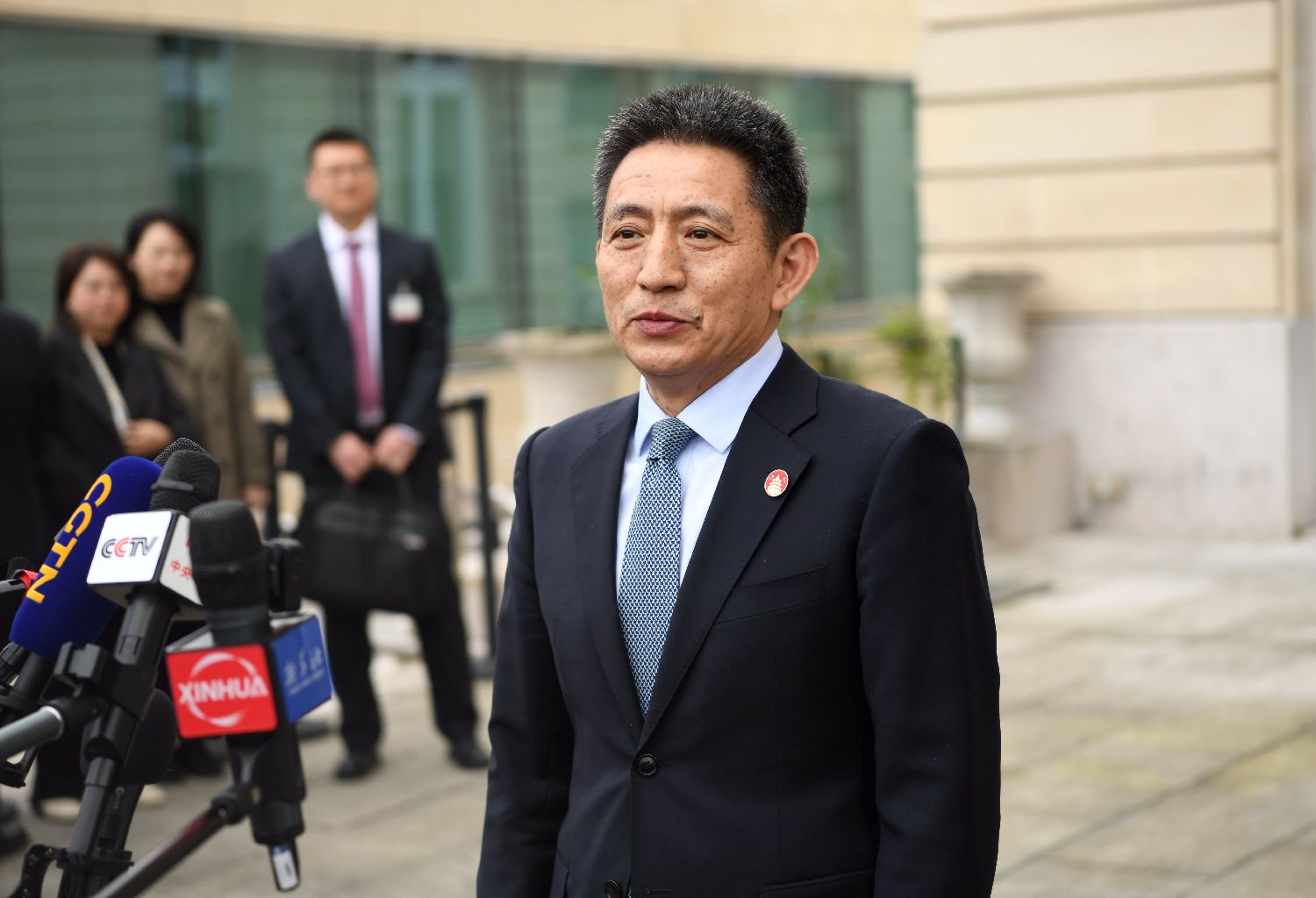 中国商务部国际贸易谈判代表兼副部长李成钢16日在磋商结束后向媒体介绍情况。中新社