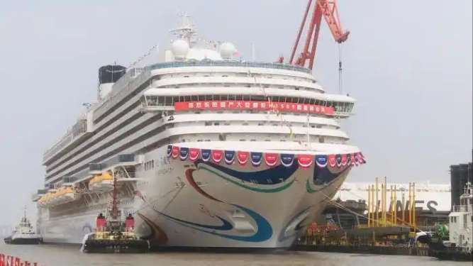 第二艘中国国产大型邮轮“爱达·花城号”20日在中国船舶集团旗下上海外高桥造船有限公司出坞,全面转入码头调试阶段,并预期于今年年中试航、年底前完工交付。