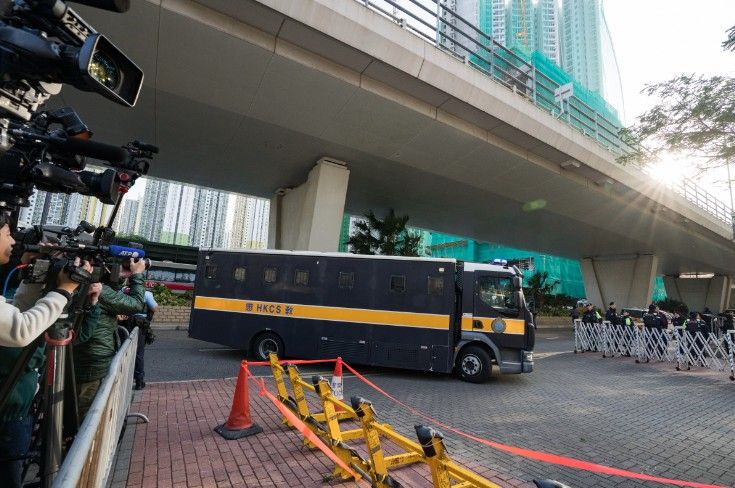 2月9日上午,黎智英案在香港西九龙裁判法院宣布判刑,图为押送黎智英的惩教署车辆驶入西九龙裁判法院。中新社