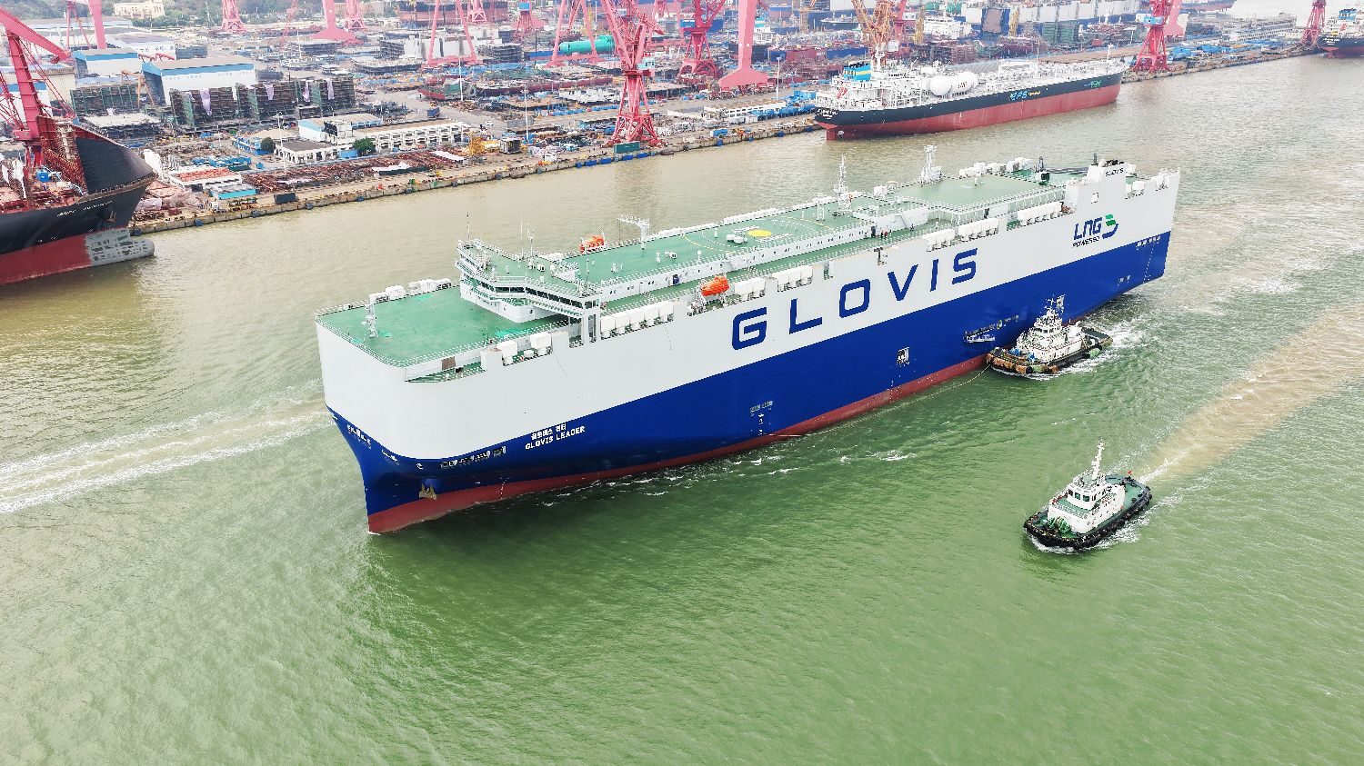 据中国船舶旗下广州广船国际3月31日通报,由广州广船国际为韩国HMM公司建造的10800车LNG双燃料汽车运输船(PCTC)1号船当日从广州南沙出海试航,这是目前全球在建的首艘万车级双燃料汽车运输船。