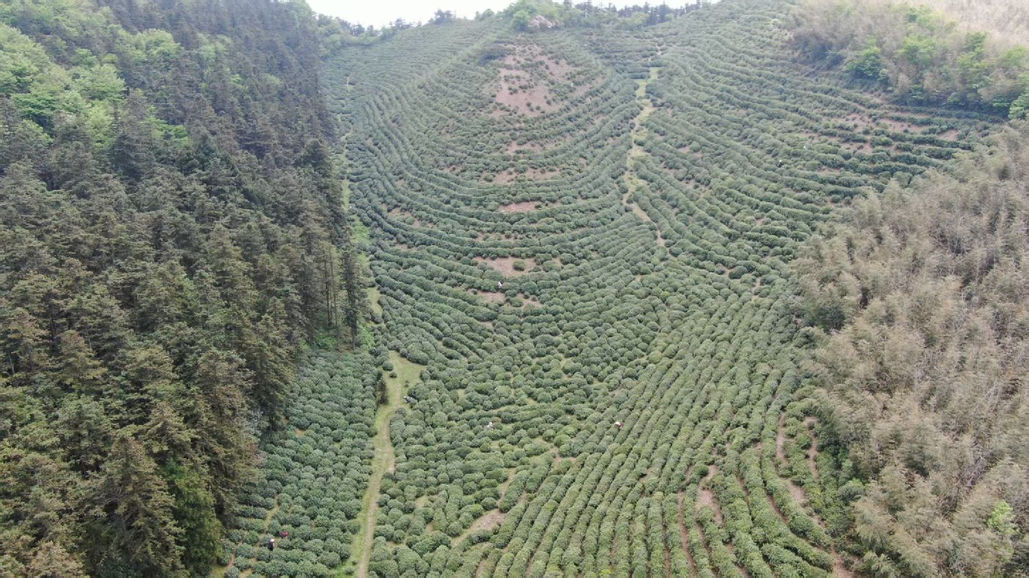 4月17日,江西永修,在千年古刹真如禅寺周边的上百亩茶园里,全寺上下“出坡”采茶。云居山真如禅寺供图