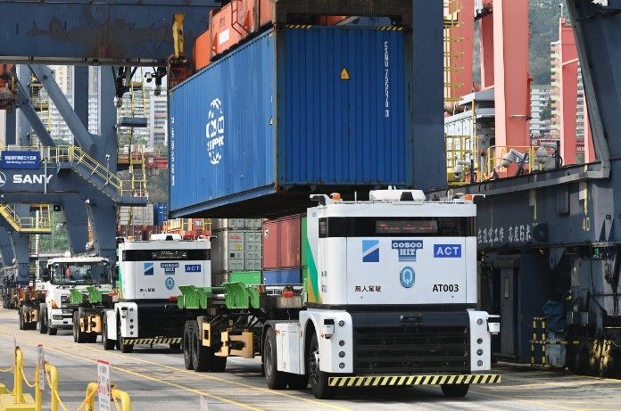 中新社报道,和记港口信托当日宣布,其旗下的香港国际货柜码头有限公司运营的香港首批6辆无人驾驶重卡正式投运。该公司是香港葵青货柜码头的主要运营商之一。