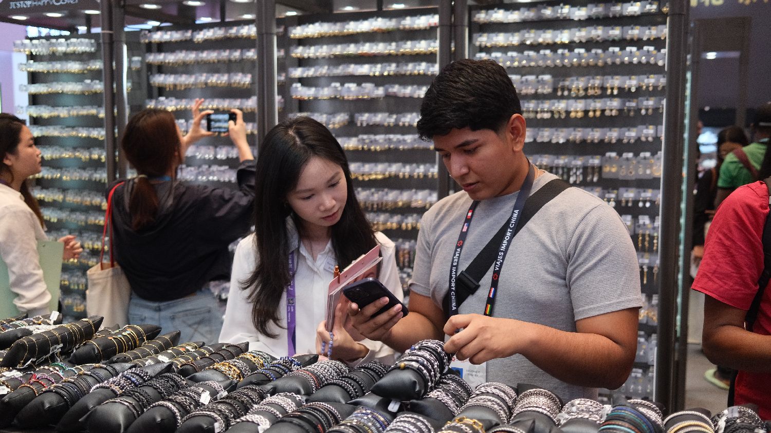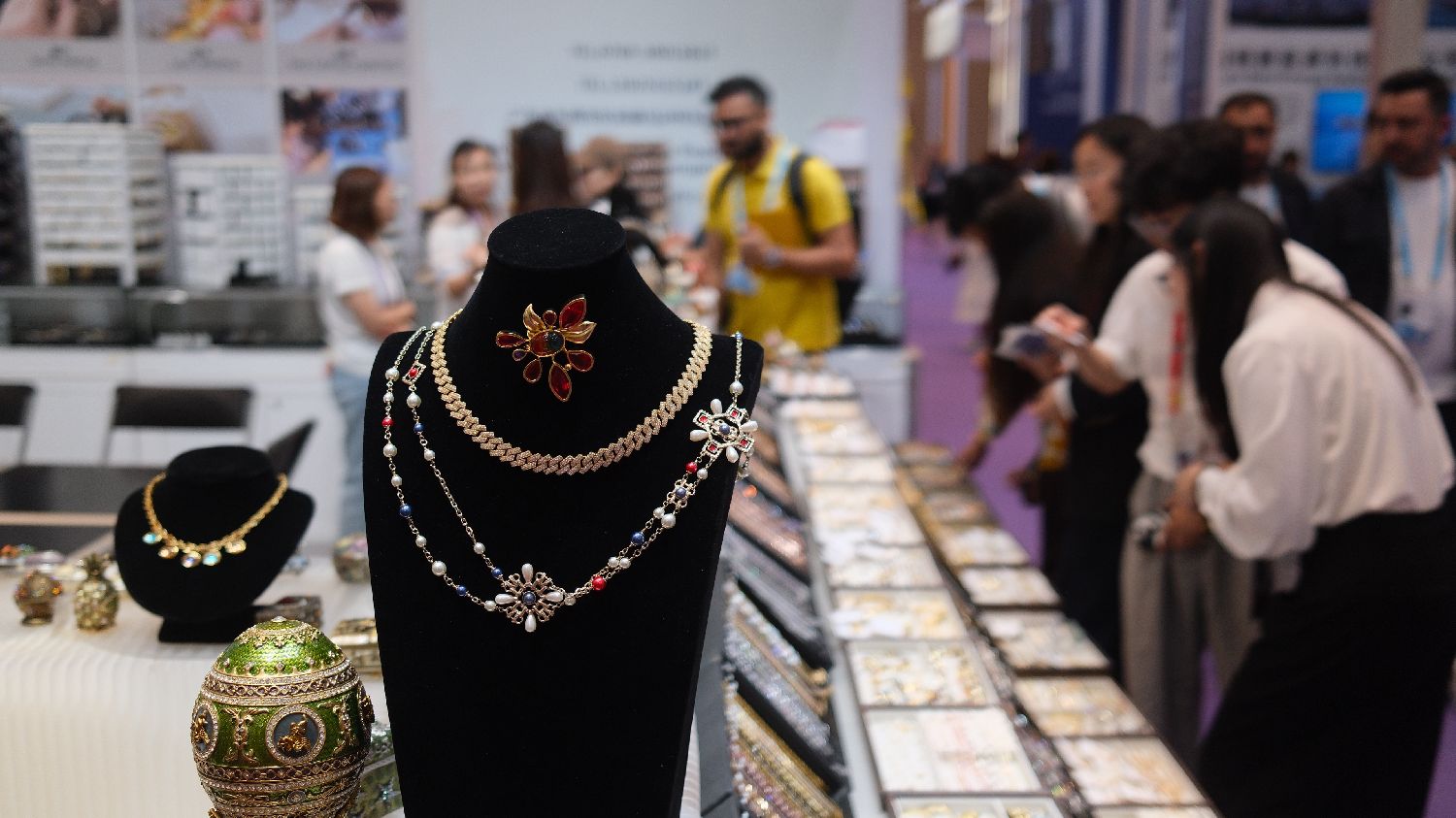 “今年一季度出口额同比增长30%,公司每月研发300至500种新款产品,并组建海内外联合设计团队,产品符合环保标准。”广东广州致好首饰有限公司副总经理陈丹萍表示,色彩创新与环保合规将成为未来发展方向。
