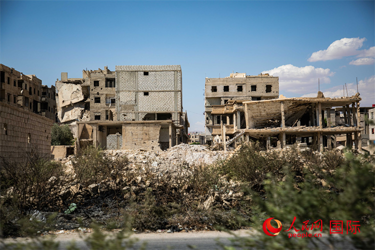叙利亚首都大马士革市郊被战争损毁的建筑。 人民网