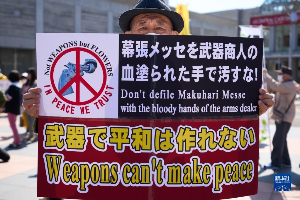 日本2023防务与安全设备国际博览会15日在日本千叶县幕张会展中心开幕。300多名民众聚集在会展中心门前,强烈抗议日本强化武器交易的行径。