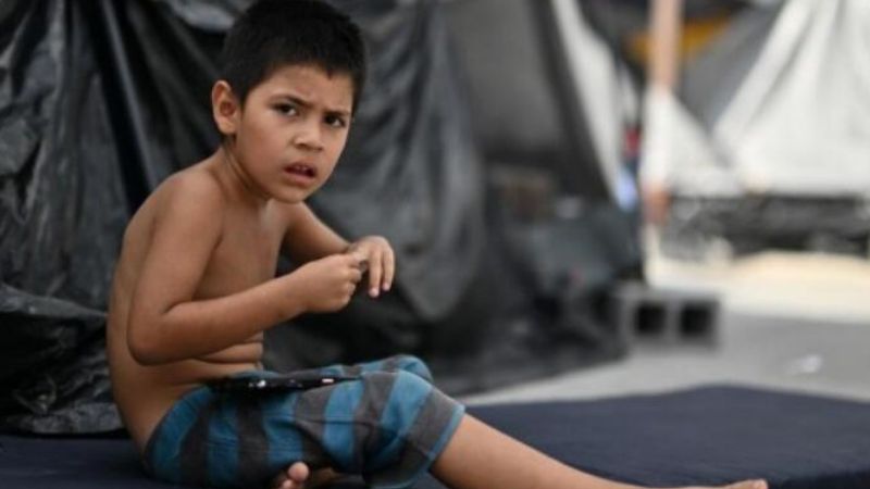 这是5月16日在美墨边境城市墨西哥雷诺萨的一处收容所内拍摄的移民儿童。新华社记者辛悦卫摄
