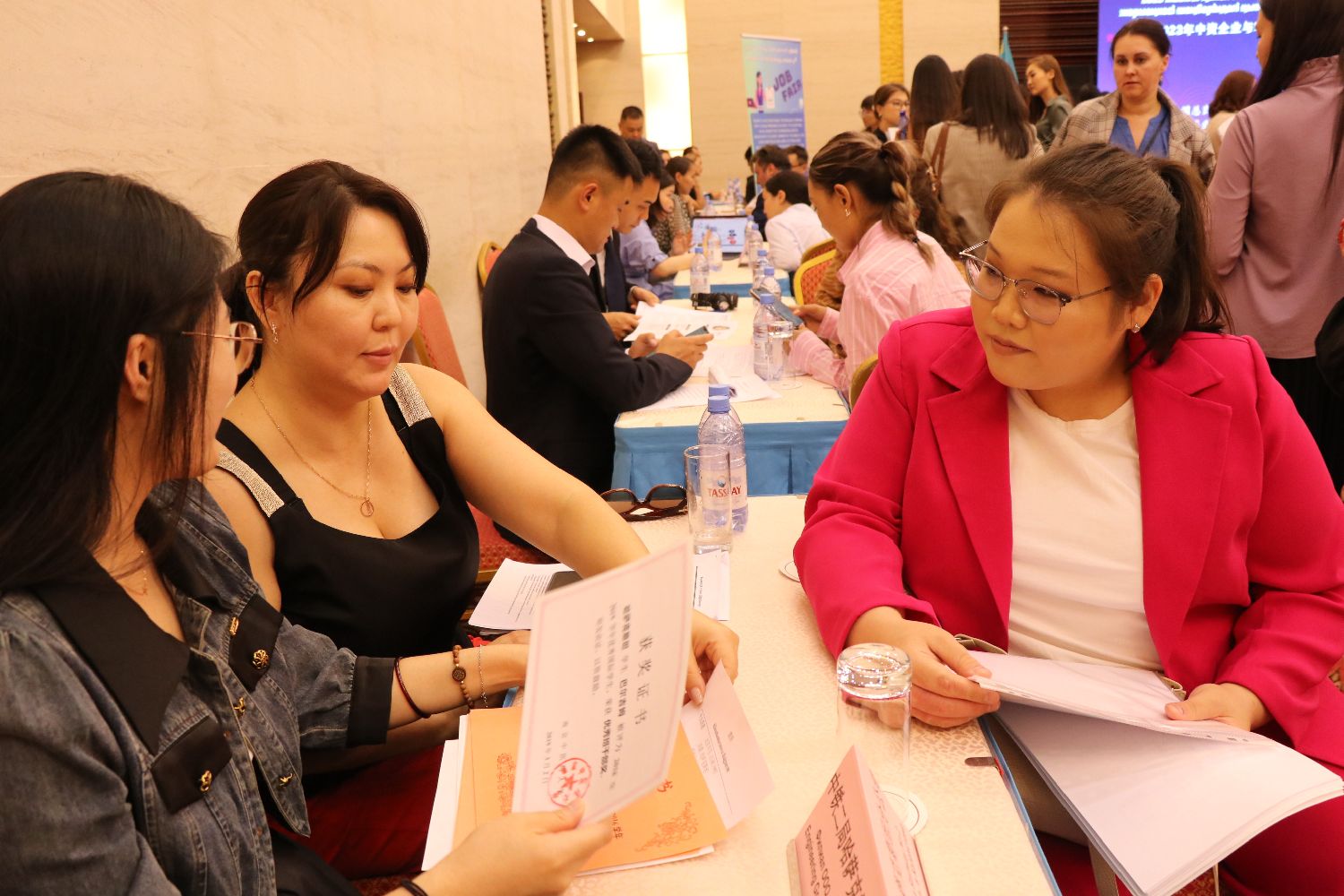 20余家中资企业代表、百余名哈萨克斯坦青年参与了此次招聘交流会,求职者中大部分曾留学中国。