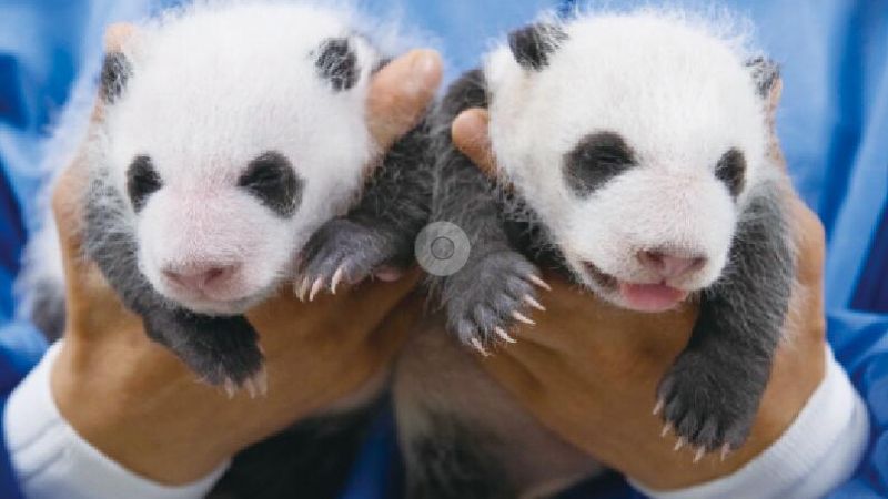 韩国三星爱宝乐园7日公布雌性双胞胎大熊猫幼崽于前一天拍摄的满月照。