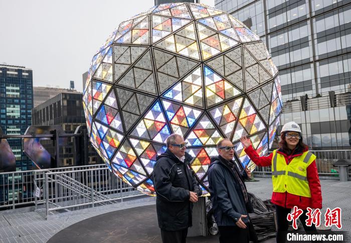 当地时间12月27日,纽约时报广场新年倒计时水晶球调试完毕后亮相。 中新社