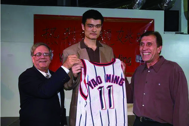 2002年,道森(左)和新秀姚明合影。新浪体育