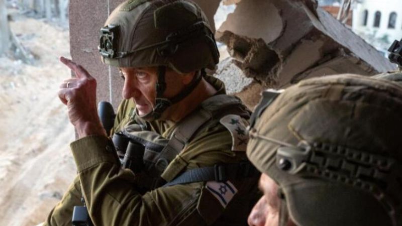 17日,以色列国防军总参谋长哈莱维(中)在加沙地带辛瓦尔死亡地点附近视察。新华社