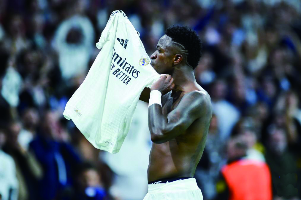 10月22日,皇家马德里队球员维尼修斯在比赛中庆祝进球。 新华社