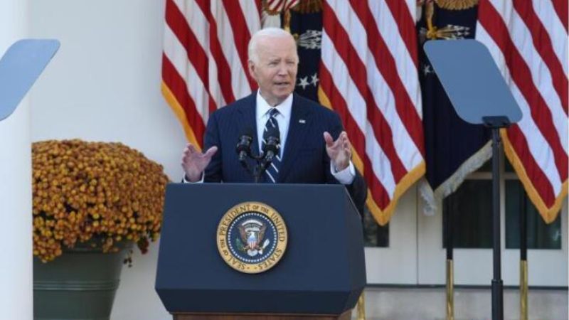 美国总统拜登7日在白宫就2024年总统选举结果发表讲话。中新社
