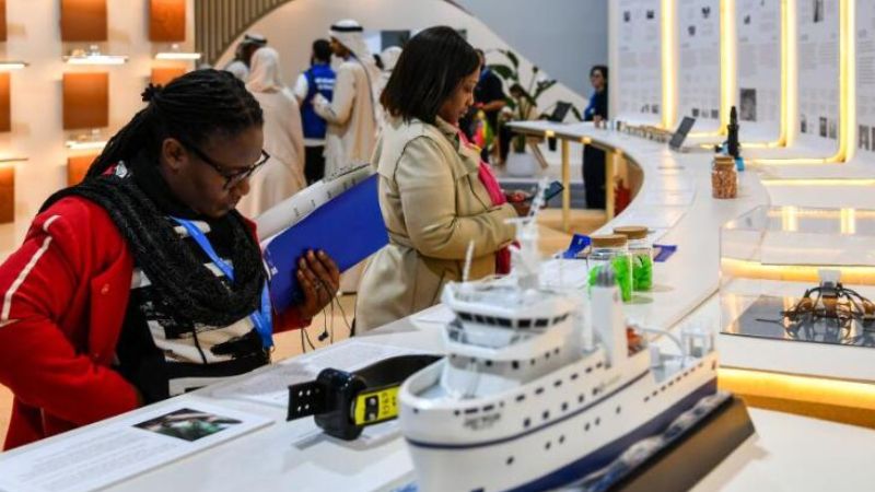 11日,在阿塞拜疆首都巴库,与会人员参观联合国气候变化巴库大会的一处展馆。新华社