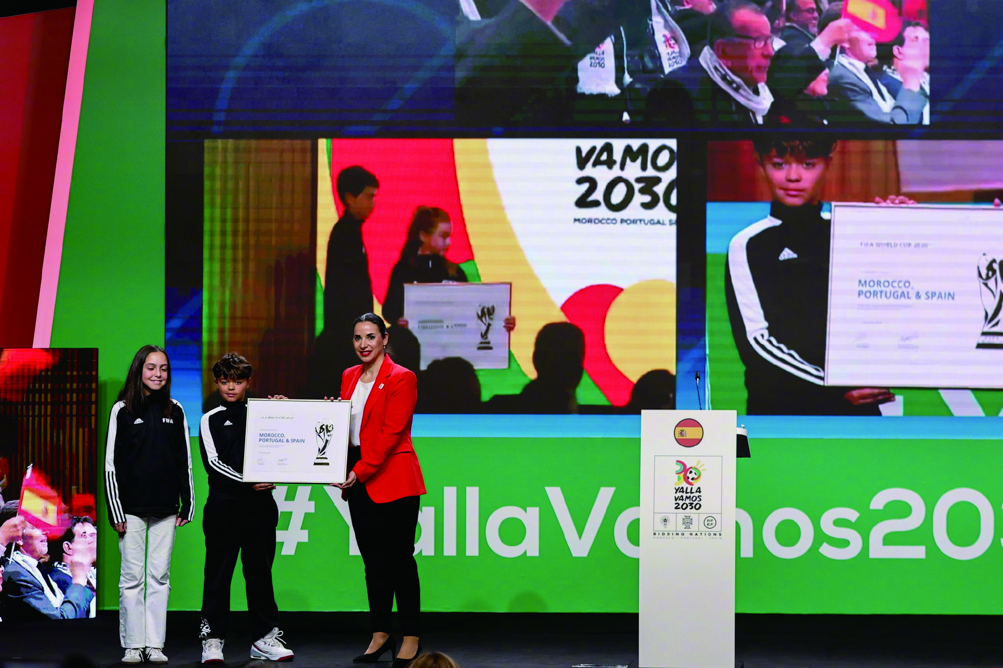 国际足联理事会11日在会上确认,西班牙、葡萄牙和摩洛哥三国正式获得2030世界杯的主办权,而本届世界杯的前三场比赛将在阿根廷、乌拉圭和巴拉圭举行,以致敬世界杯诞生百年。