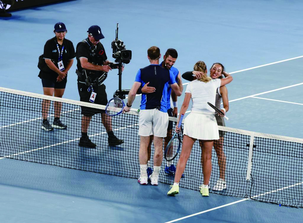 赛后,四位奥运冠军穆雷、德约科维奇、阿扎伦卡和郑钦文拥抱致意。 新华社