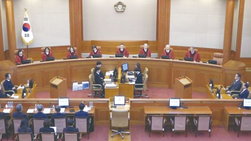 韩国宪法法院当地时间14日14时举行总统尹锡悦弹劾案第一次正式辩论,尹锡悦缺席庭审,辩论仅持续4分钟左右便结束。图为辩论现场视频截图。新华社