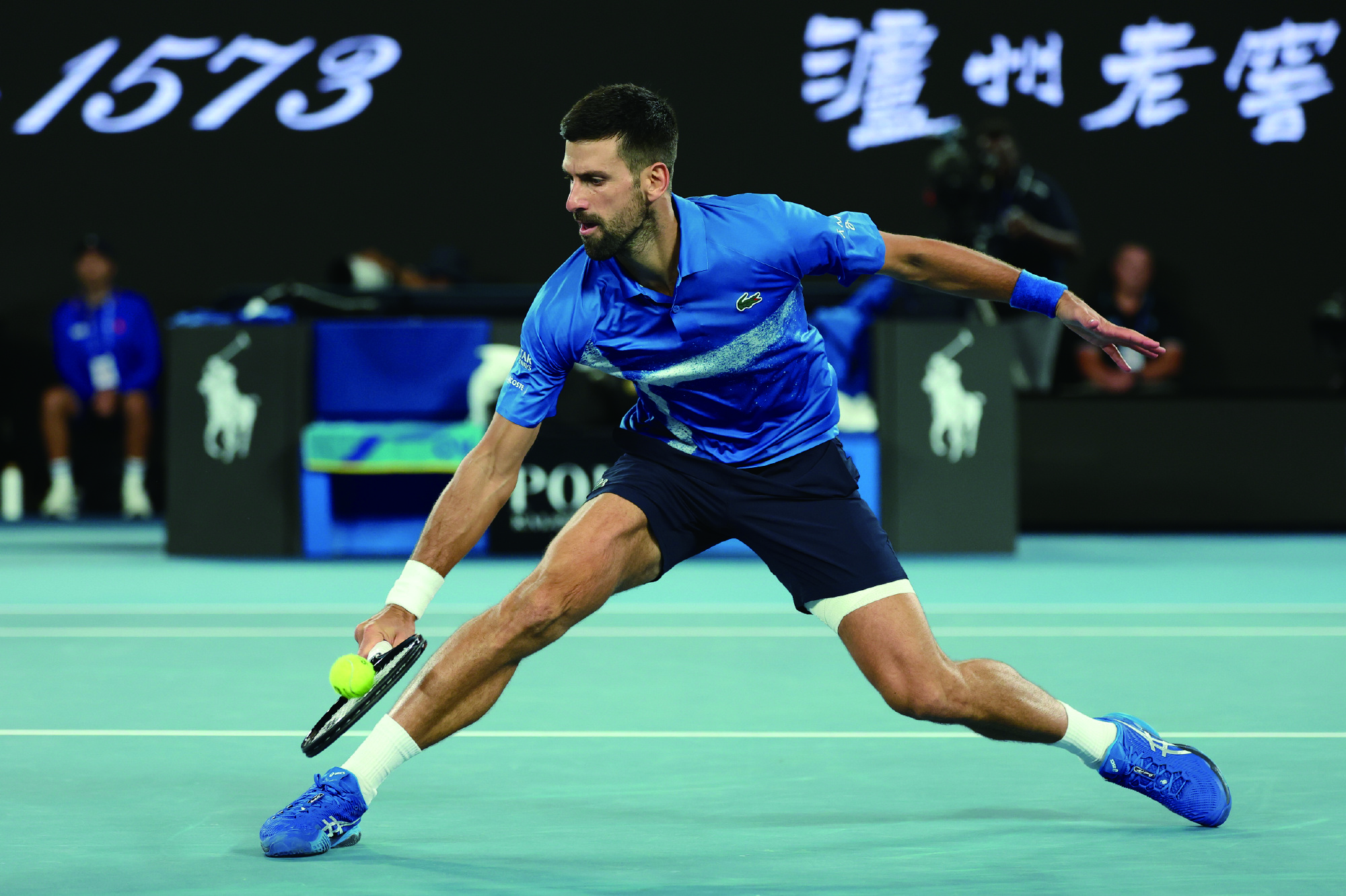 1月21日比赛第一盘结束后,德约科维奇左腿缠上了绷带。 澳网官微